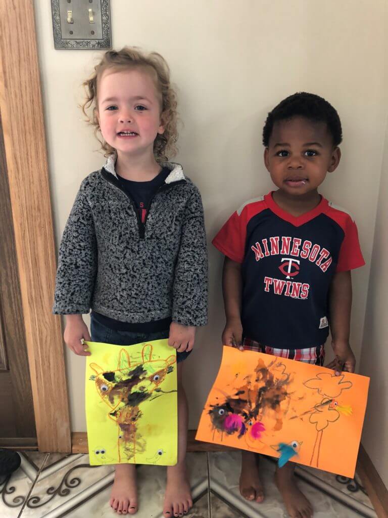 My daughter is 3 and my son is 2 and they had so much fun with this activity. We don’t need to be entered into the challenge, I just wanted to thank you for the fun activity. We thoroughly enjoyed getting to do it. – Art kit participant